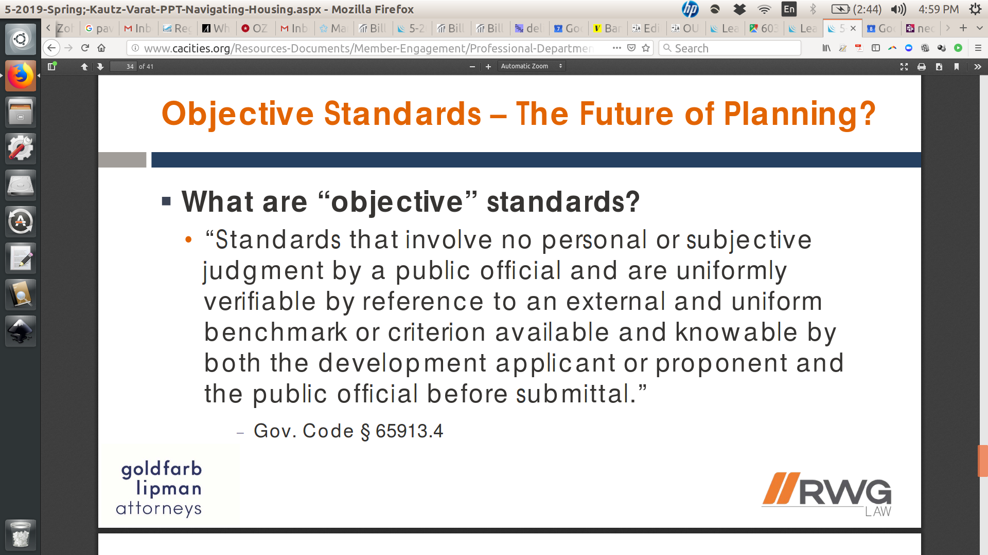 Planners, Planning Commissions, City Council members and active community members all over the state take for granted that each proposed project will be reviewed and vetted through a discretionary process. One of the slides in the accompanying power point asks the question “Objective standards – the future of planning?”